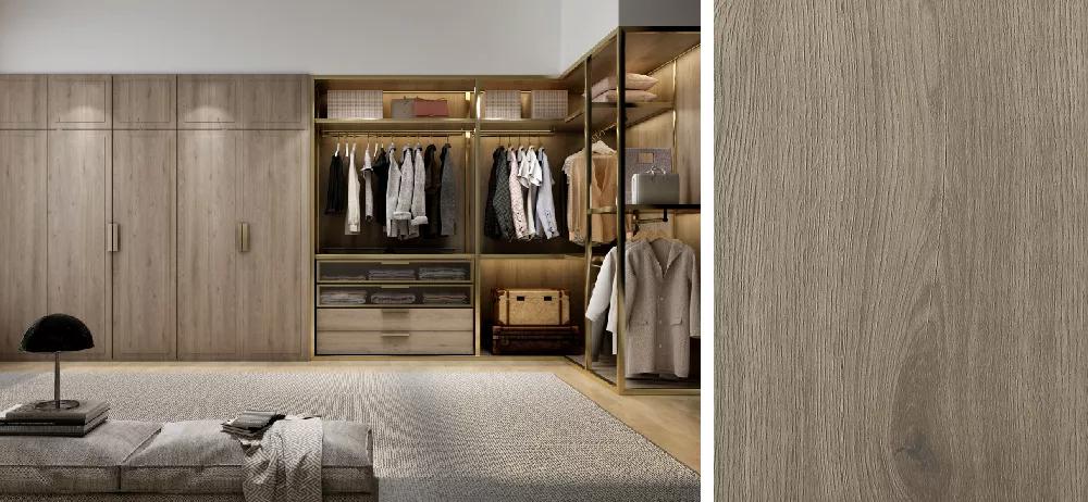 鹏鸿板材深刻诠释原木自然属性,德国进口0°度钢板与超亚光肤感压贴工艺,精确处理光的视觉影响,面层温润、光泽内敛,真实呈现原木天然肌理。