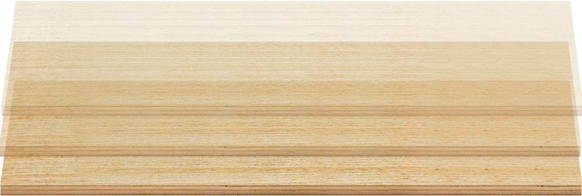 Longitudinal and horizontal arrangement, more stable structure相邻单板纤维纵横排布,品质层层可见
