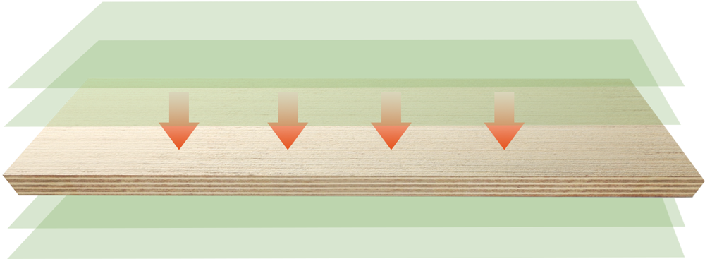 相邻单板纤维垂直,顺向层全齿接工艺,结构更稳定。