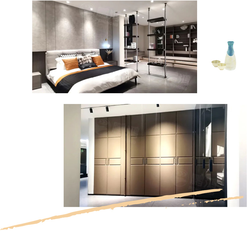 作为欧洲文艺复兴的中心,意大利一定程度上代表世界文化、艺术的至高成就,服装和建筑如此,而家居,更不例外。鹏鸿以意式轻奢、极简为展厅基调,结合门墙柜一体化设计,将美学与工艺完美糅合,既尊重质感,又不失底蕴。