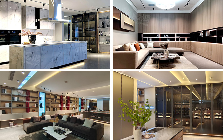 展厅分为落地区、高定区两大核心区域,技术工艺同步升级。3米挑高门板、准分子饰面、超承重层板、三明治板、悬浮式隔断柜……特色之处不胜枚举,而这源于鹏鸿家居团队的探索与革新,更源于鹏鸿人对美好生活的极致追求。